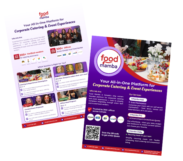 Food Mamba is a Toronto-based corporate catering and events marketplace that connects companies with 200+ verified vendors. The platform helps businesses plan office meals and corporate events through vendor discovery, smart quote requests, and an office meal program.